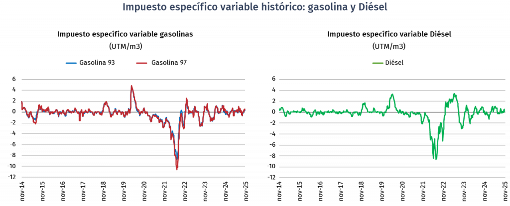 El componente variable sumado al componente base definido en la ley N° 18.502, permite obtener los valores del impuesto específico final de cada combustible incluido en MEPCO. A partir del 11 de diciembre de 2022 comienzan a regir las modificaciones introducidas por la ley N° 20.794 y el Decreto Supremo N° 1.790 que modifica su reglamento. Estas modificaciones permiten definir un impuesto específico variable diferenciado para las gasolinas según su octanaje. Además, desde el 24 de enero de 2023 comienzan a regir las modificaciones introducidas por la Ley N° 21.537 que modifica el MEPCO para evitar fluctuaciones semanales.