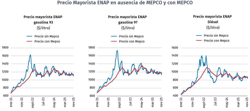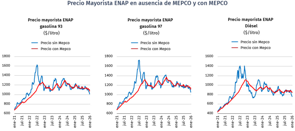 El MEPCO fue creado por la ley Nº 20.765 publicada el 09 de julio del 2014, con la finalidad de establecer un mecanismo de estabilización de los precios de venta internos de la gasolina automotriz, del petróleo diésel, del gas licuado de petróleo y del gas natural comprimido, ambos, estos últimos, de consumo vehicular. Dicho mecanismo opera a través de incrementos y rebajas a los impuestos específicos a los combustibles establecidos en la ley N° 18.502, según lo establecido en el Decreto Supremo Nº 1.119, de 2014, del Ministerio de Hacienda, que aprueba reglamento para la aplicación del MEPCO.