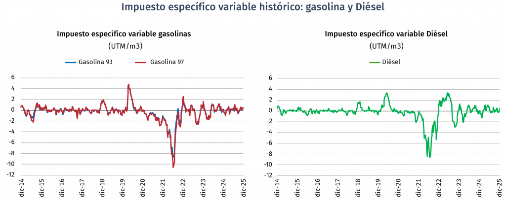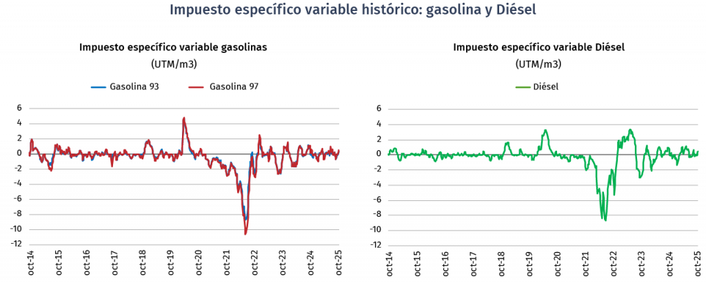 El componente variable sumado al componente base definido en la ley N° 18.502, permite obtener los valores del impuesto específico final de cada combustible incluido en MEPCO. A partir del 11 de diciembre de 2022 comienzan a regir las modificaciones introducidas por la ley N° 20.794 y el Decreto Supremo N° 1.790 que modifica su reglamento. Estas modificaciones permiten definir un impuesto específico variable diferenciado para las gasolinas según su octanaje. Además, desde el 24 de enero de 2023 comienzan a regir las modificaciones introducidas por la Ley N° 21.537 que modifica el MEPCO para evitar fluctuaciones semanales.