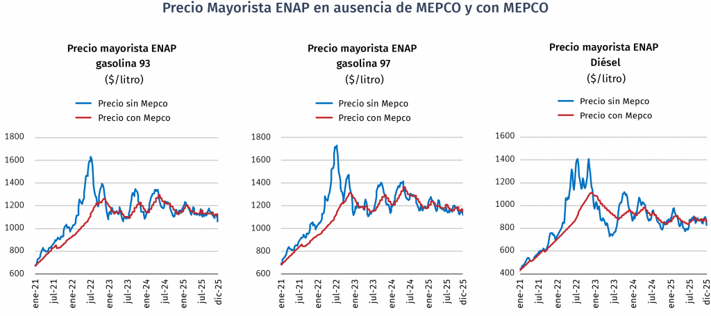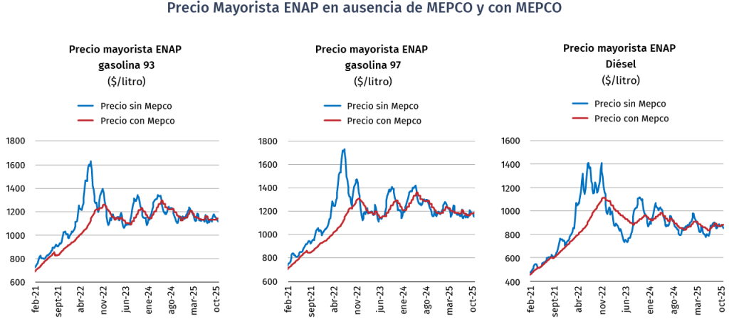 El MEPCO fue creado por la ley Nº 20.765 publicada el 09 de julio del 2014, con la finalidad de establecer un mecanismo de estabilización de los precios de venta internos de la gasolina automotriz, del petróleo diésel, del gas licuado de petróleo y del gas natural comprimido, ambos, estos últimos, de consumo vehicular. Dicho mecanismo opera a través de incrementos y rebajas a los impuestos específicos a los combustibles establecidos en la ley N° 18.502, según lo establecido en el Decreto Supremo Nº 1.119, de 2014, del Ministerio de Hacienda, que aprueba reglamento para la aplicación del MEPCO.